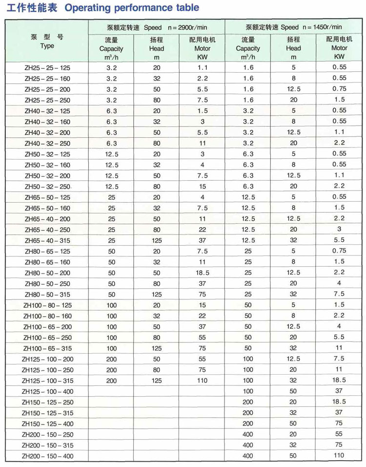 泵的性能范圍:流量為1.6?400m3/h,描程為5~125m。上吸高度為5米以內(nèi)。