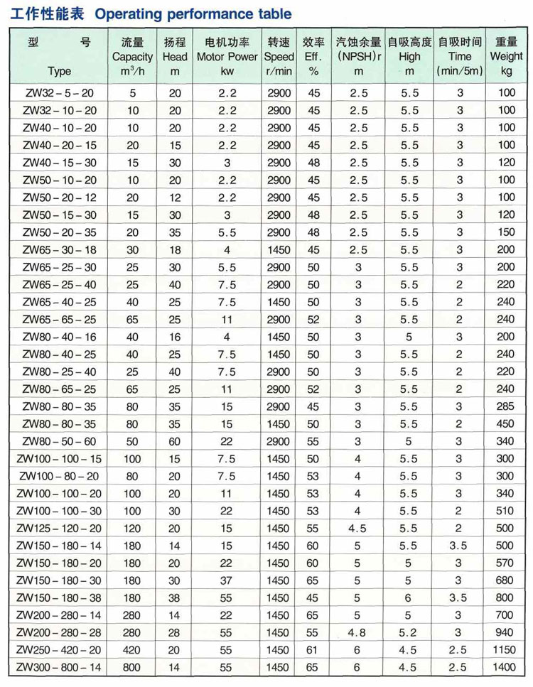 zw系列自吸式無(wú)堵塞排污泵用于輸送含有固體顆粒、纖維、漿料和混合懸浮介質(zhì)的理想臥式雜質(zhì)栗。